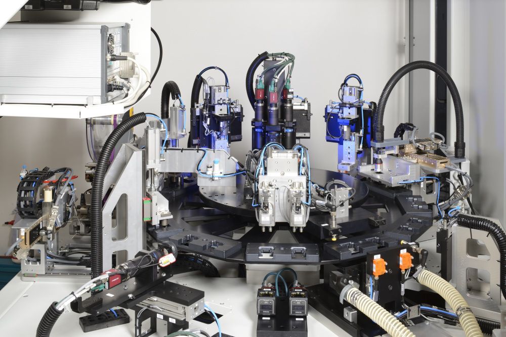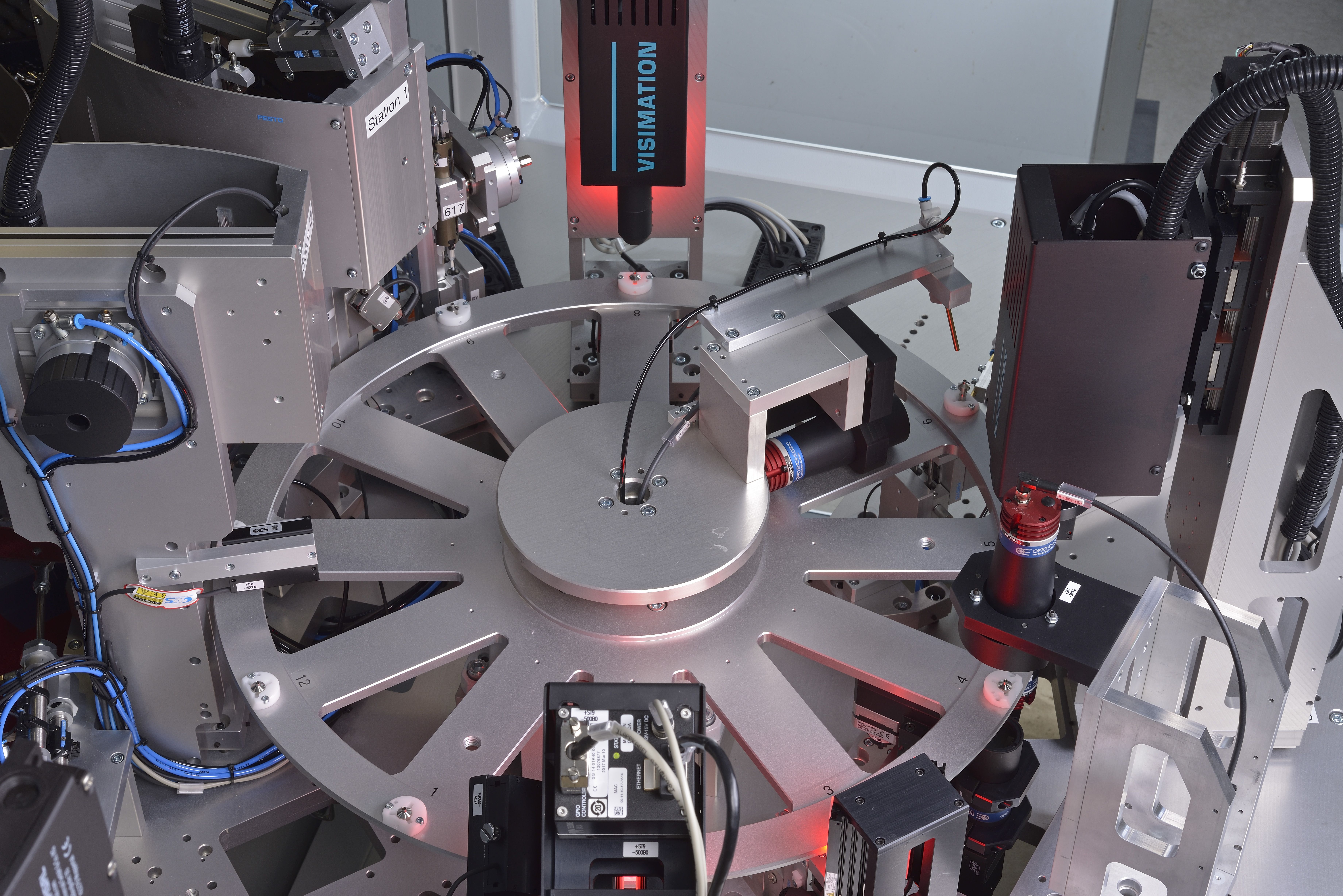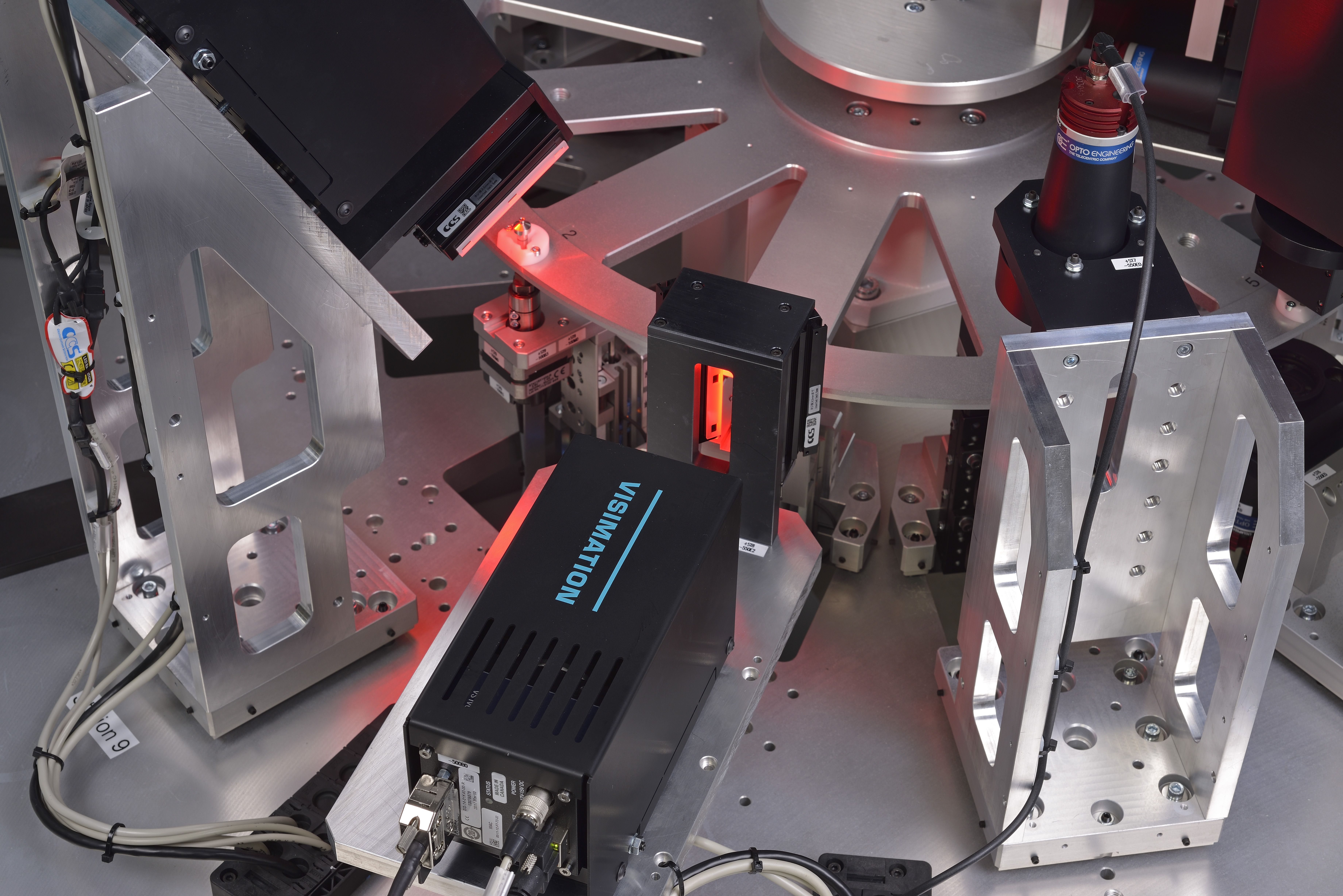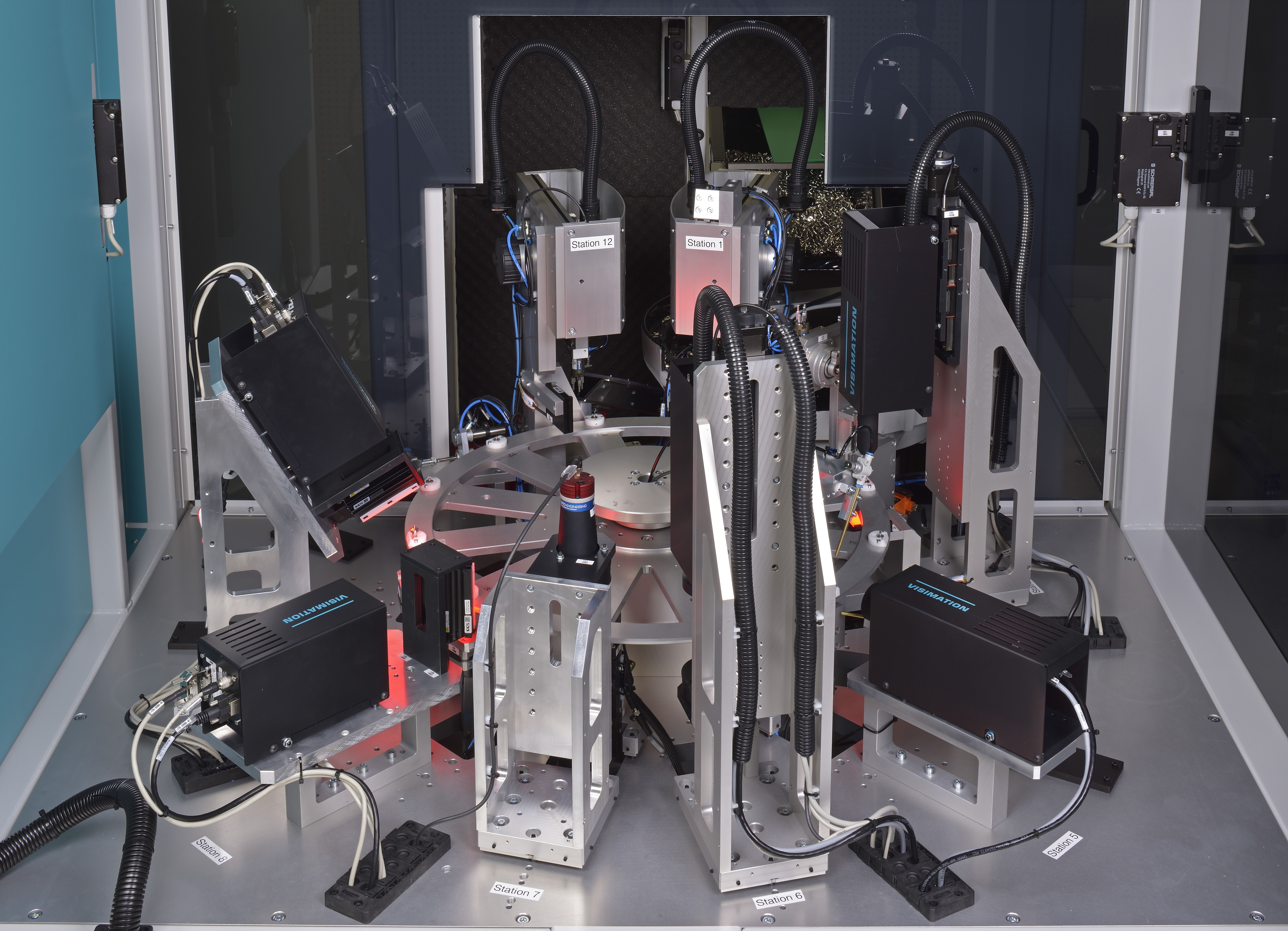 Modula RT ist eine Rundtakt-Prüfanlage für eine Vielzahl an Teile Geometrien. Die Prüflinge werden vereinzelt in einen Rundtaktteller eingelegt und in bis zu 12 Stationen parallel geprüft. Der Ausstattung sind dabei fast keine Grenzen gesetzt, sie reicht dabei von hochpräzisen telezentrischen Vermessung und Oberflächeninspektion über Gewindegängigkeitsprüfung bis hin zu Laserbeschriftung und Härteprüfung. Mit dem bewährten Modula Prinzip lassen sich die Prüfstationen im Handumdrehen umrüsten und erweitern.